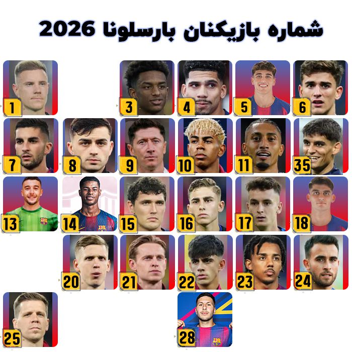 شماره بازیکنان بارسلونا ۲۰۲۶
