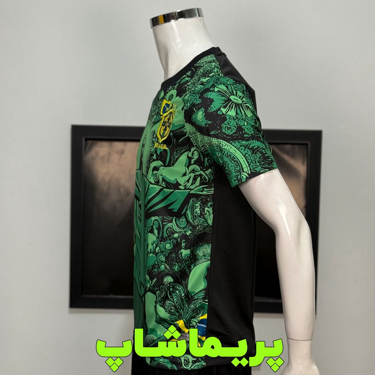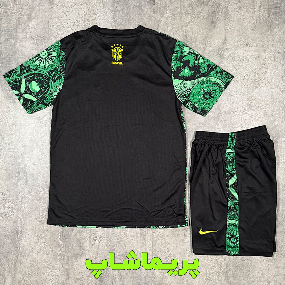 کیت طرح مسیح برزیل 2025 سبز با طراحی عکس عیسی مسیح و ترکیب رنگ طوسی مشکی و لوگوهای زرد به یکی از  کیت های زیبای برزیل تبدیل شده و ما اون رو با قیمت مناسب توی سایت موجود کردیم.