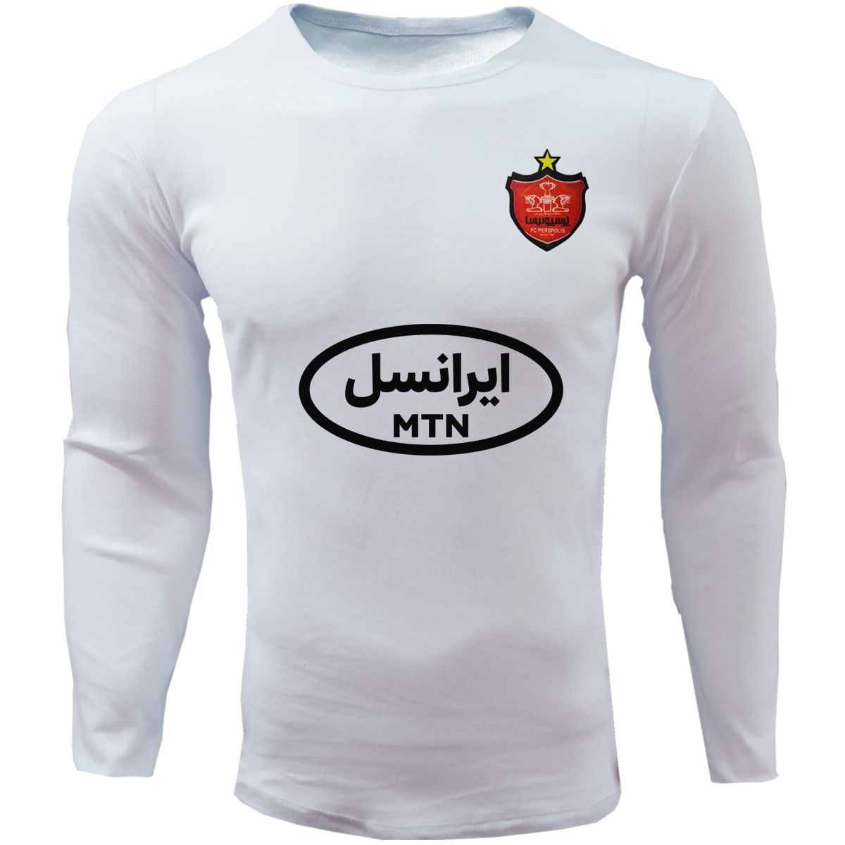 خرید لباس هواداری پرسپولیس سفید آستین بلند با اسپانسر