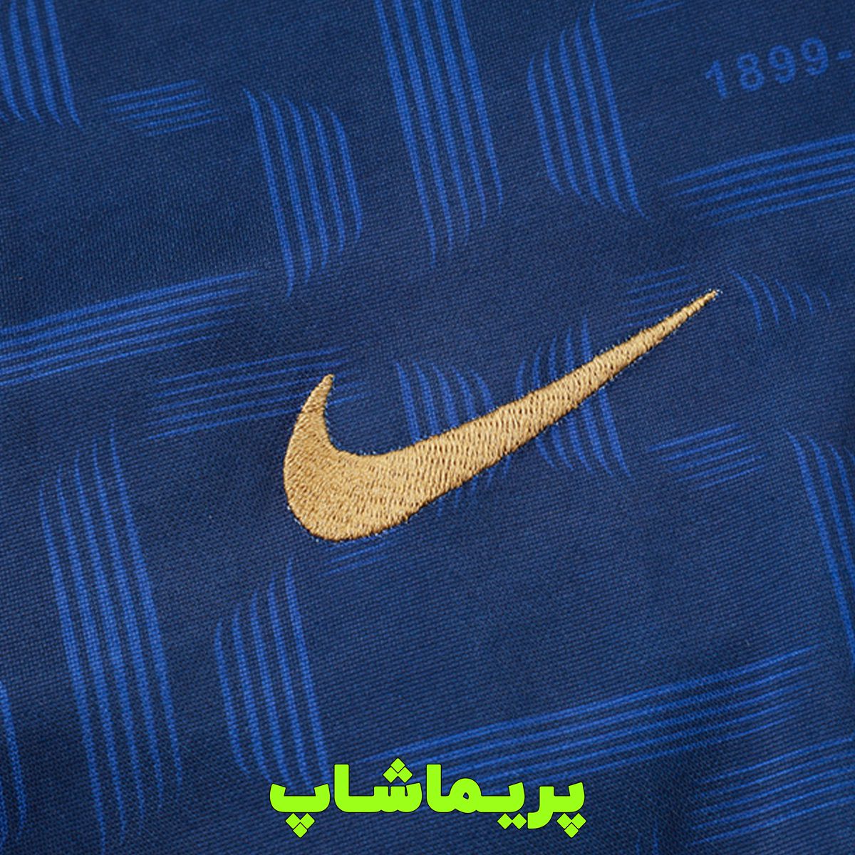 لوگوی بارسلونا به صورت پارچه ای با ظرافت بالا هست که روی گرمکن و شلوار با تراکم بالا دور دوخت شده.