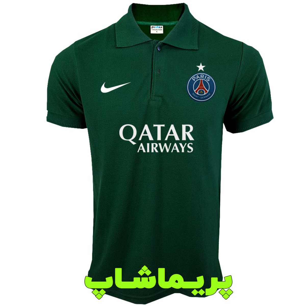 خرید پولوشرت پاریس سن ژرمن سبز با اسپانسر