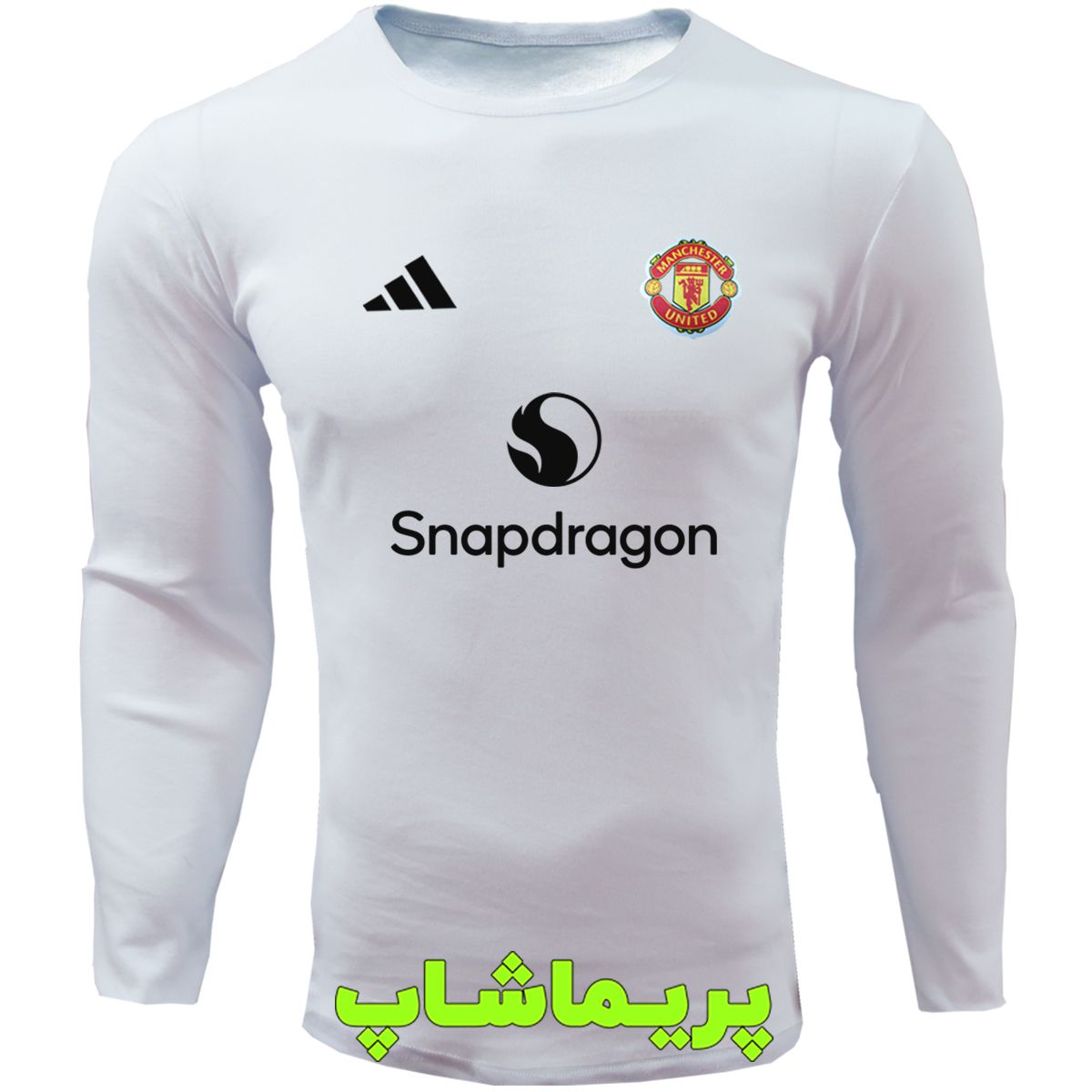 خرید تیشرت هواداری منچستریونایتد سفید با اسپانسر آستین بلند