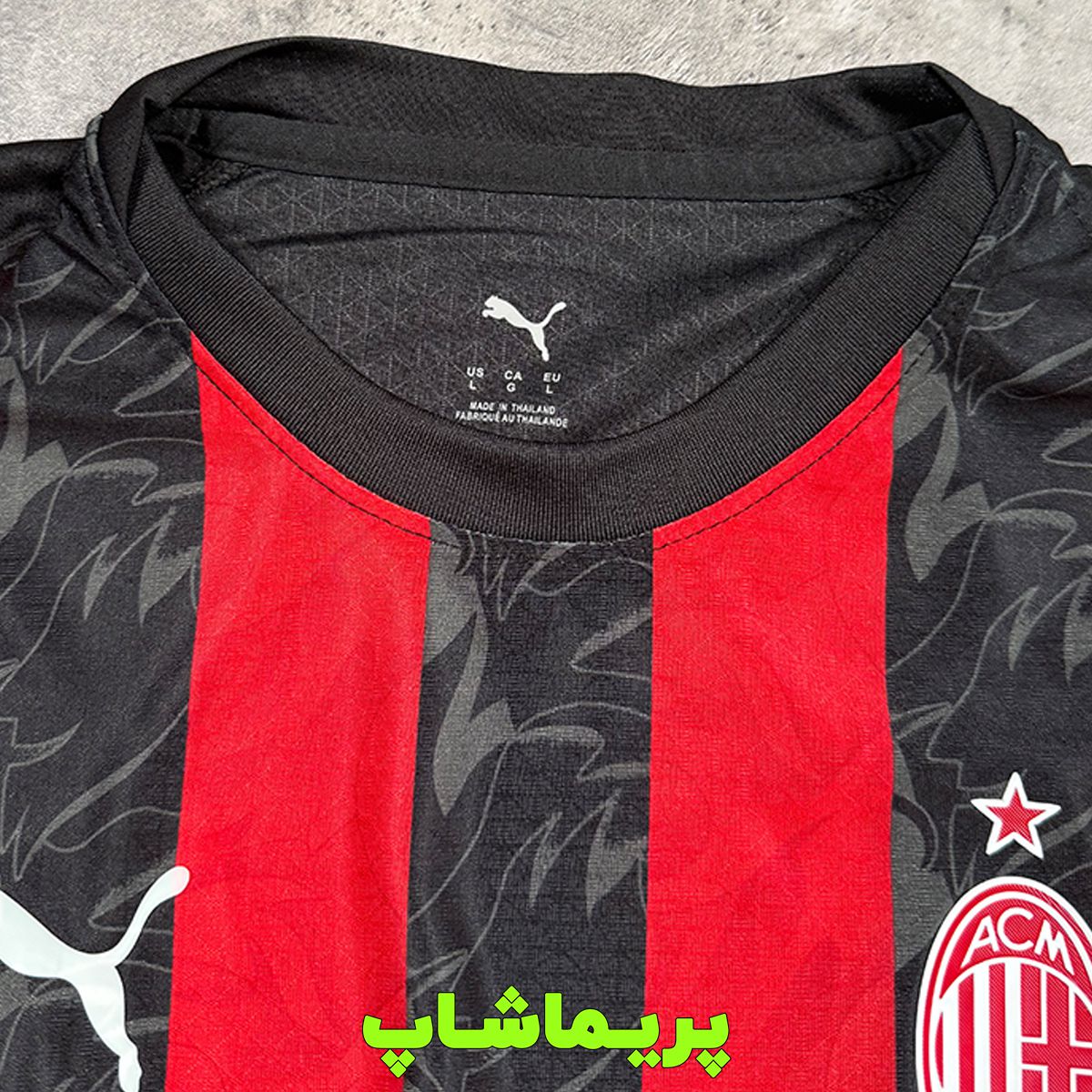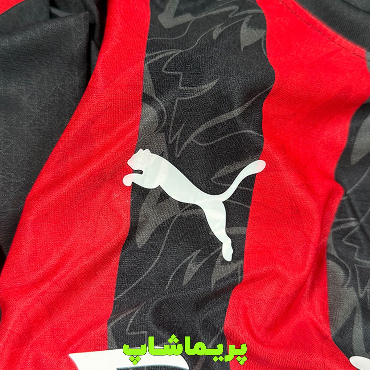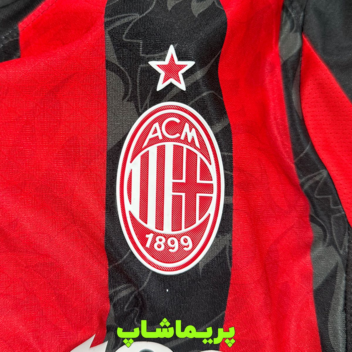 چاپ اسم و شماره پشت کیت پلیری اول آث میلان آستین بلند 2026 با رنگ و فونت رسمی باشگاه انجام میشه.