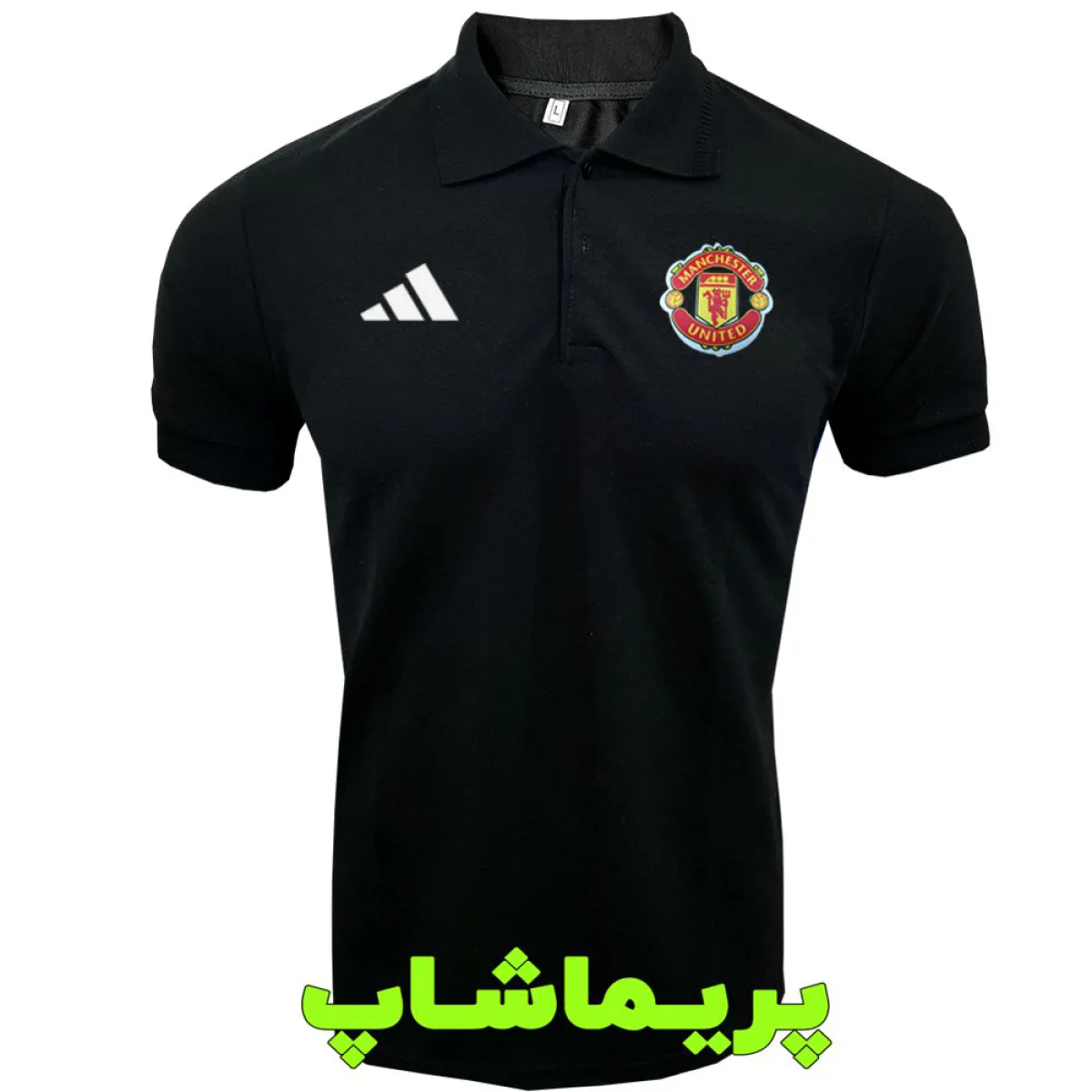 لوگو یونایتد به صورت چاپ روی پارچه اس، لوگو آدیداس به صورت پی وی سی درجه یک هست که هر دو با اتو روی پولوشرت منچستریونایتد مشکی پرس میشه.