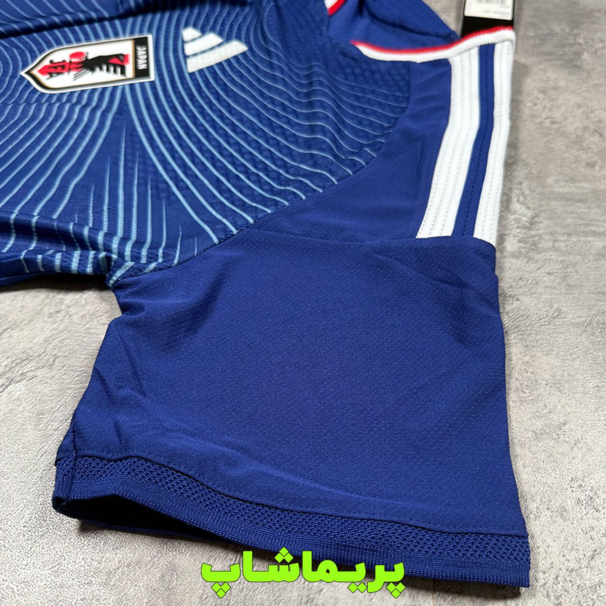 لوگو ژاپن و آرم آدیداس کیفیت ژلاتینی داره و بصورت برجسته روی پارچه پرس شده.