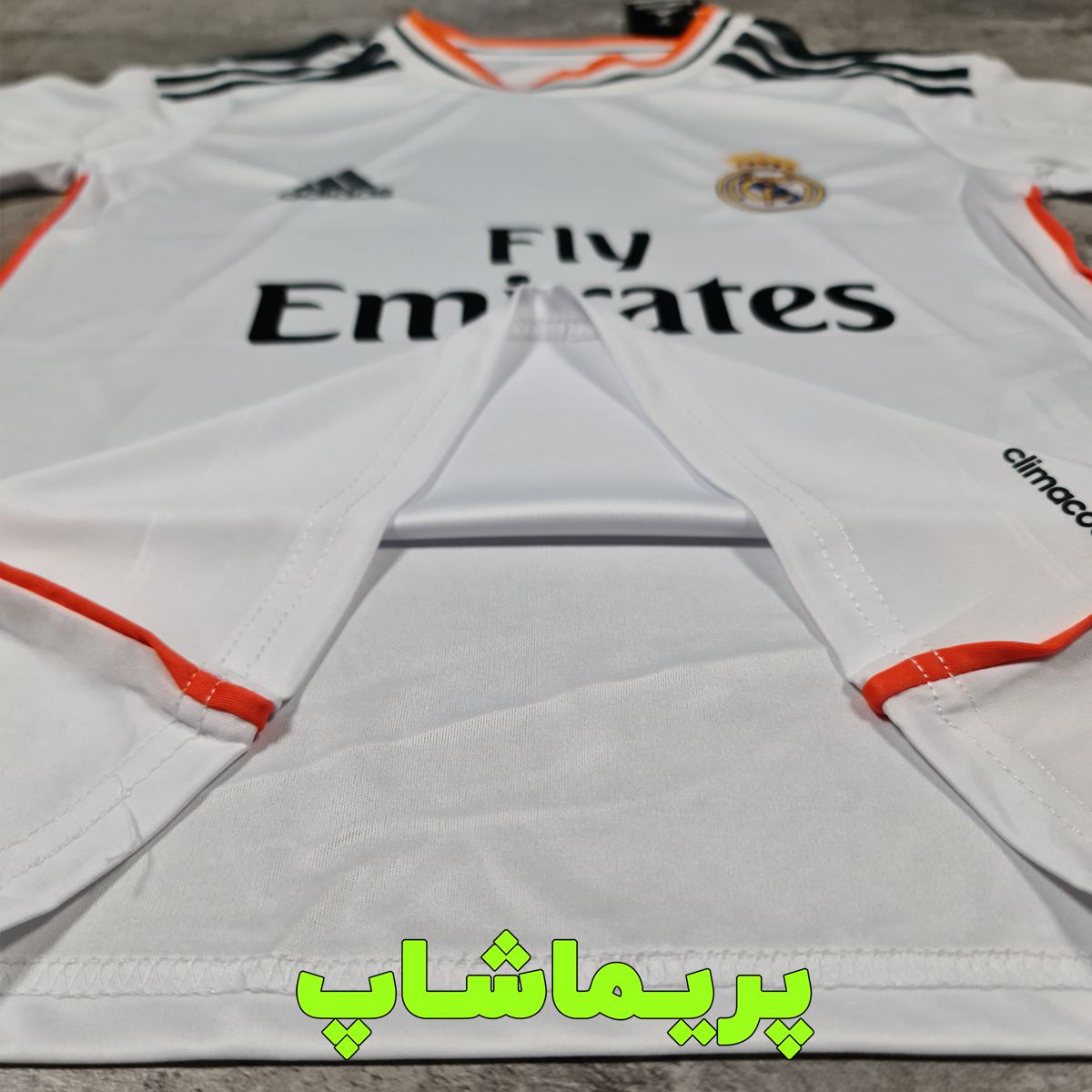 چاپ اسم و شماره دلخواه شما روی لباس رئال مادرید با فونت اصلی تیم، بصورت پرس حرارتی انجام میشه.
