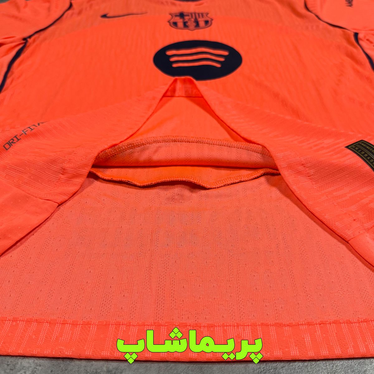لوگو لباس بارسلونا پارچه ایه و روی پارچه پرس شده. با اینکه کیفیت این پرس خوبه و مشکلی ایجاد نمیکنه اما بازم بهتره شما مراقبت لازم رو داشته باشید.